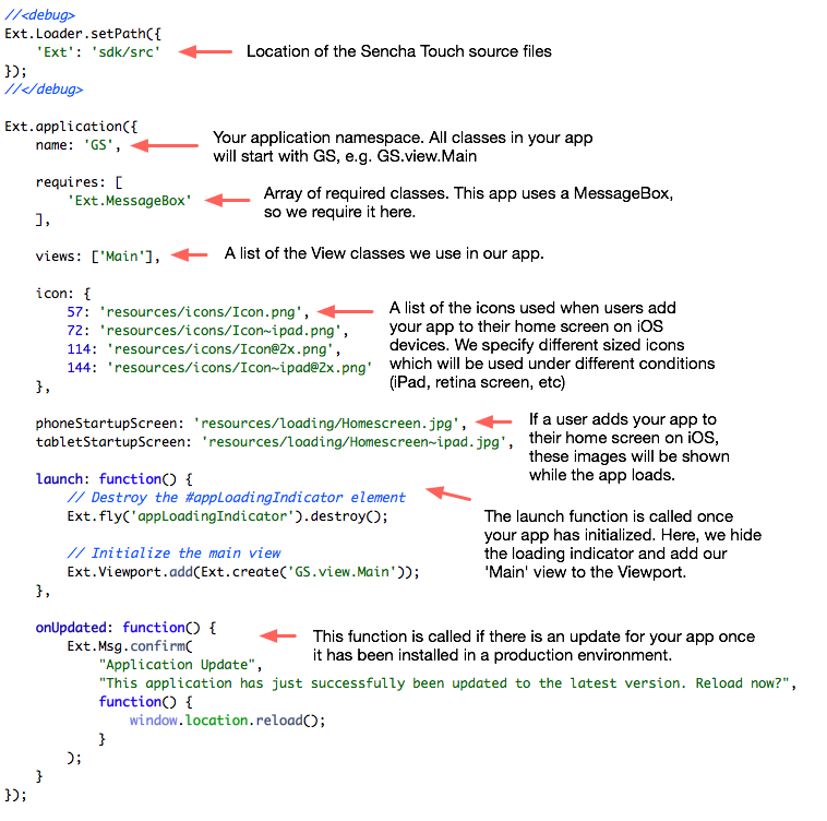 launch函數(shù)是你應用的入口點。在默認應用下,他將會先隱藏loading畫面,然后創(chuàng)建一個Main視圖的實例,并把它加入Viewport。