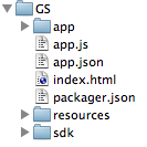 2.[INFO] Created file /Users/nickpoulden/Projects/sencha/GS/.senchasdk3.[INFO] Created file /Users/nickpoulden/Projects/sencha/GS/index.html4.[INFO] Created file /Users/nickpoulden/Projects/sencha/GS/app.js5....這將會產(chǎn)生一個叫做GS的Sencha Touch應用骨架,放在../GS目錄下。骨架應用中包含了所有你創(chuàng)建一個Touch應用所需要的東西,包括默認的index.html,一份Touch SDK的拷貝,CSS,圖片和打包你的應用所需的配置文件。