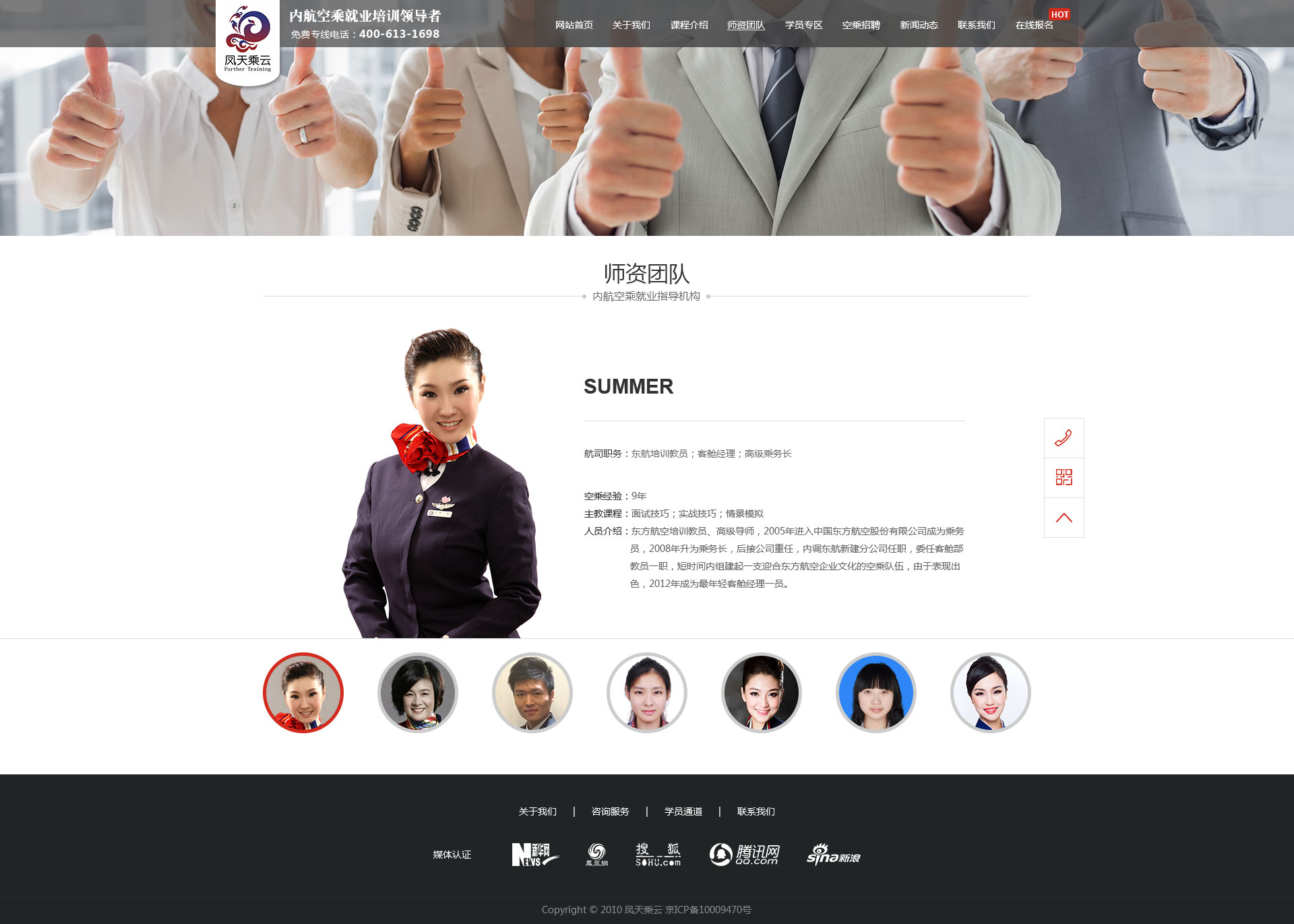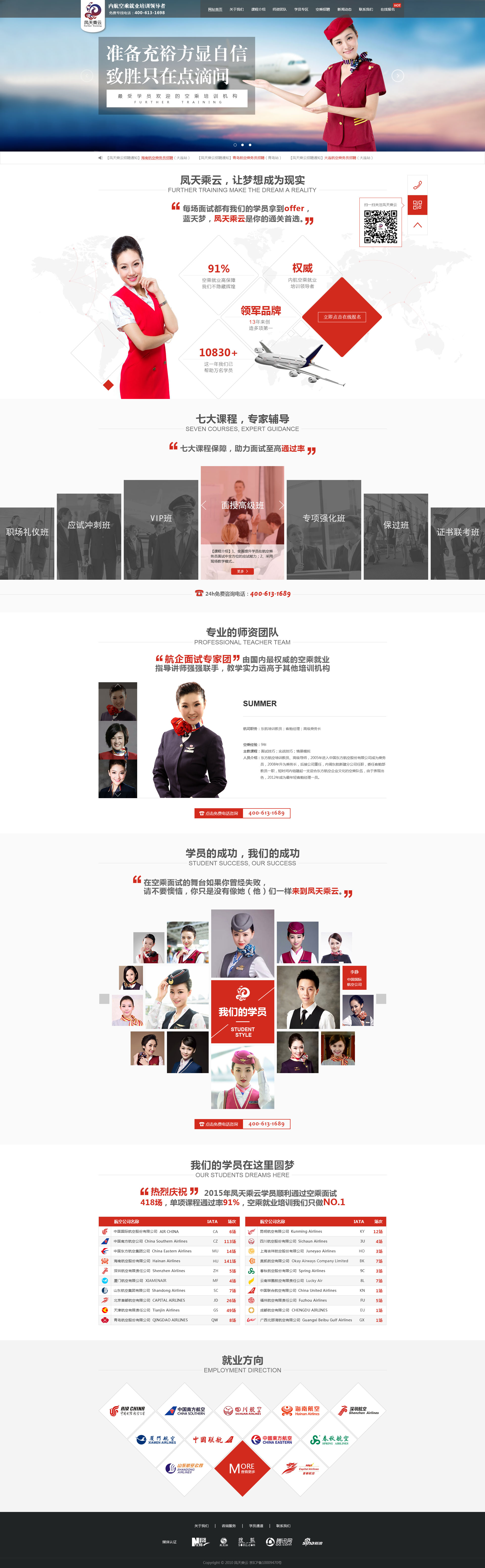 鳳天乘云是內(nèi)航空乘就業(yè)培訓(xùn)的開創(chuàng)者,全國授權(quán)開展航空服務(wù)技能培訓(xùn)的權(quán)威機(jī)構(gòu)之一。