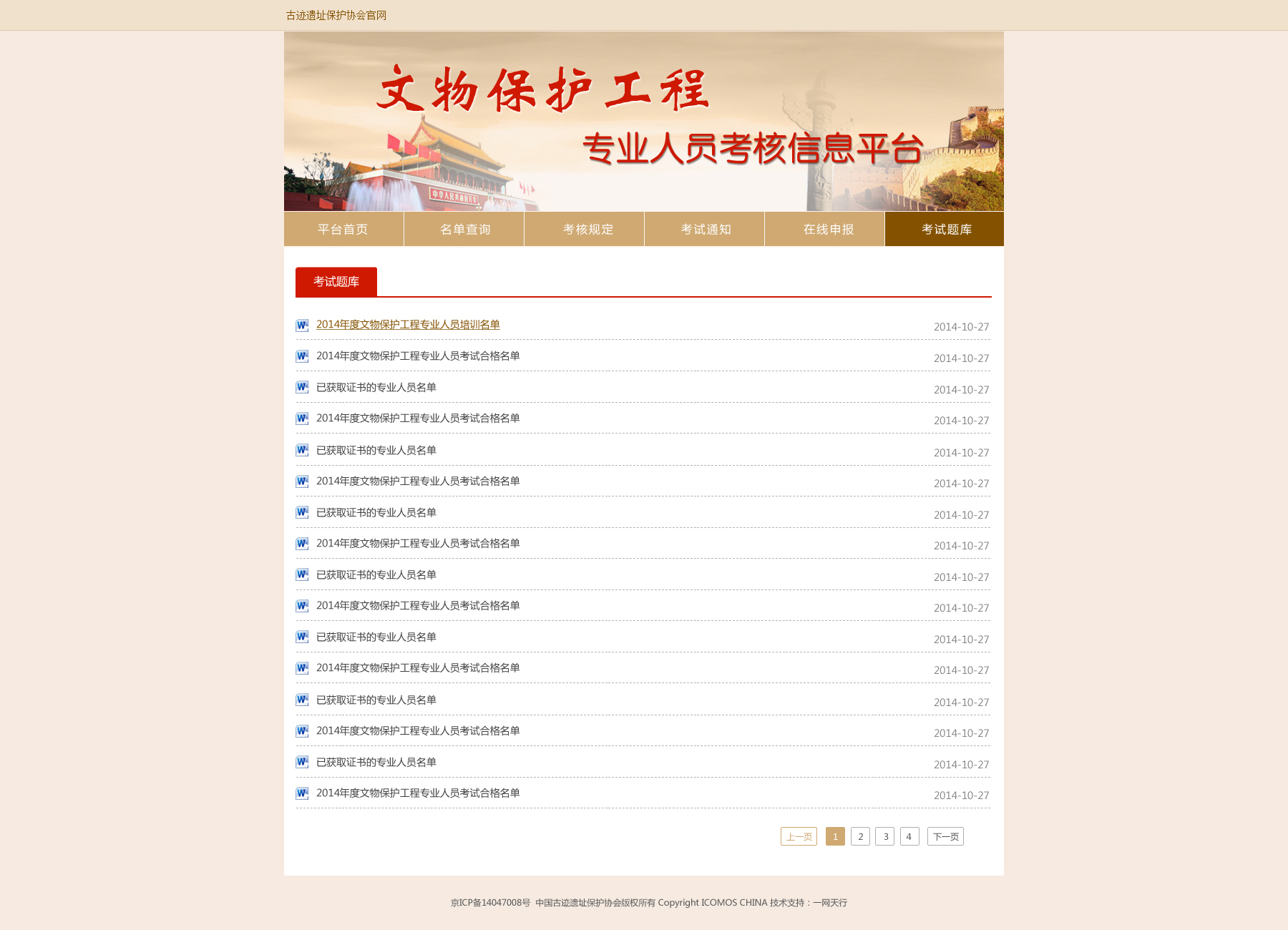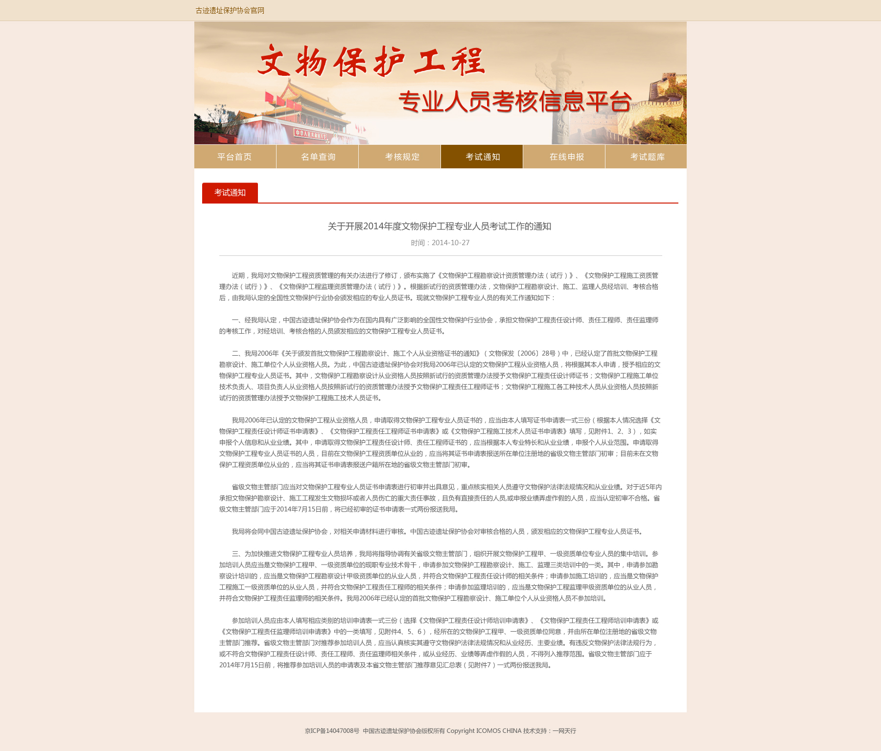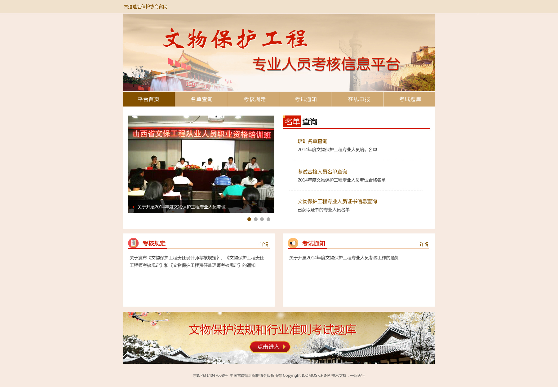 中國古跡遺址保護協會文物保護工程專業(yè)人員責任設計師和責任工程考核平臺