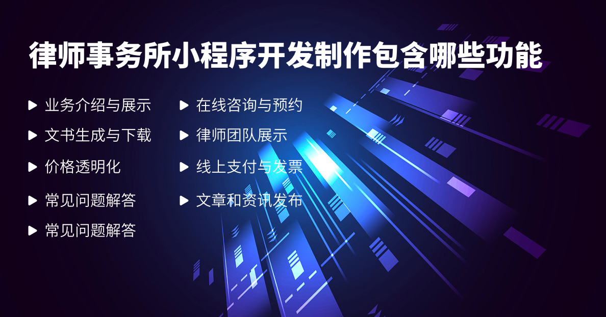 對于律師事務(wù)所而言,開發(fā)和制作一個專屬的小程序能夠讓他們更好地與客戶互動,提供更加便捷的法律服務(wù)。那么,律師事務(wù)所小程序開發(fā)制作包含哪些功能呢?本文將介紹一些常見而且實用的功能供您參考。
