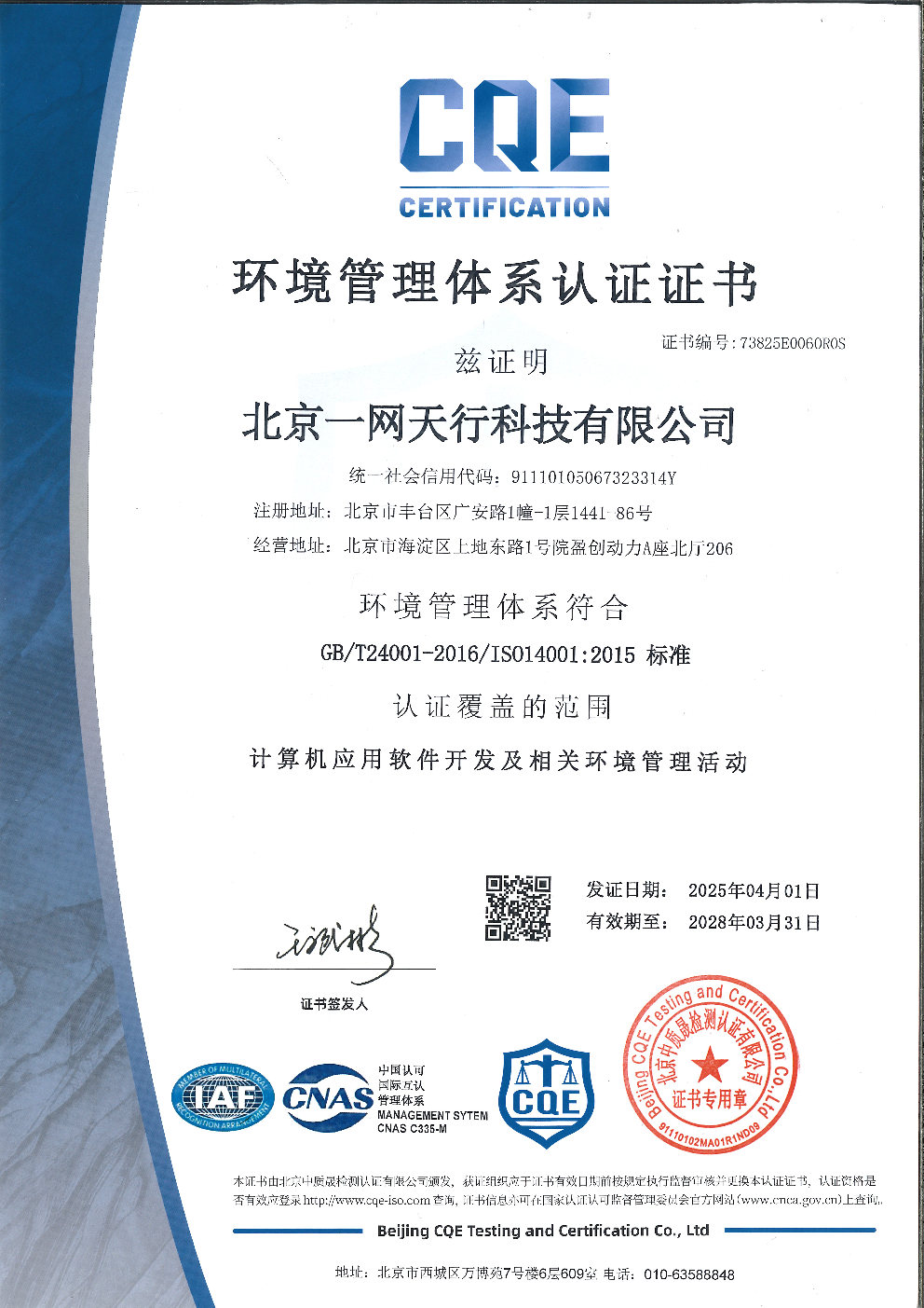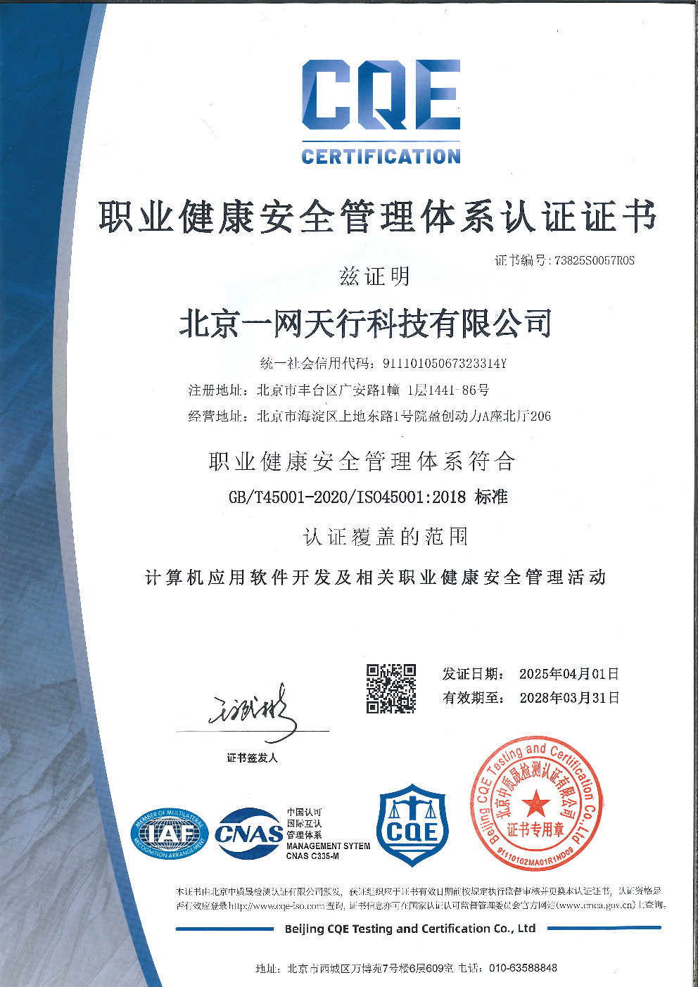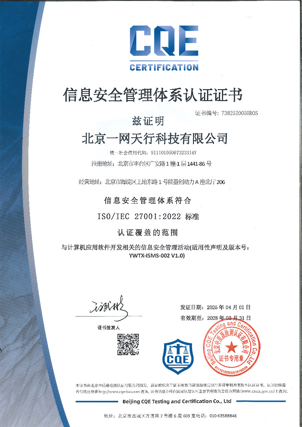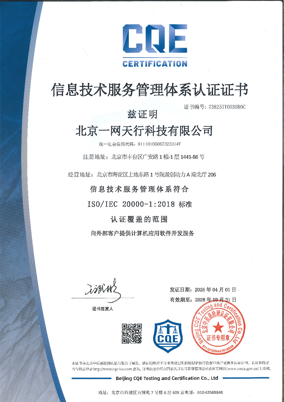 除《ISO9001質(zhì)量管理體系》外,北京一網(wǎng)天行科技有限公司還相繼取得《ISO14001環(huán)境管理體系》、《ISO45001職業(yè)健康安全體系》、《ISO27001信息安全管理體系》、《ISO20000信息技術(shù)服務(wù)管理體系》。